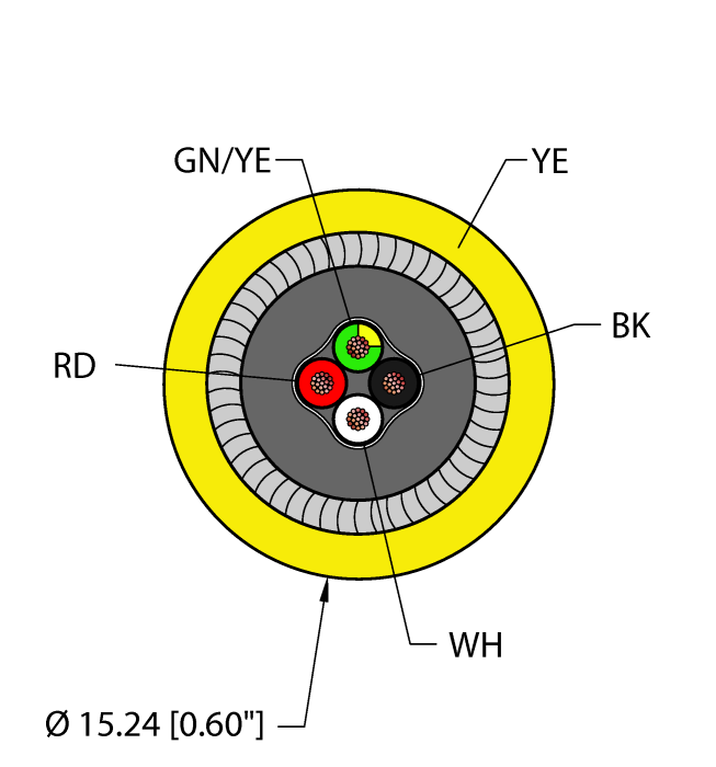 - Funda de PVC, color amarillo, armadura de cable: IAA, 4 × 18 AWG
